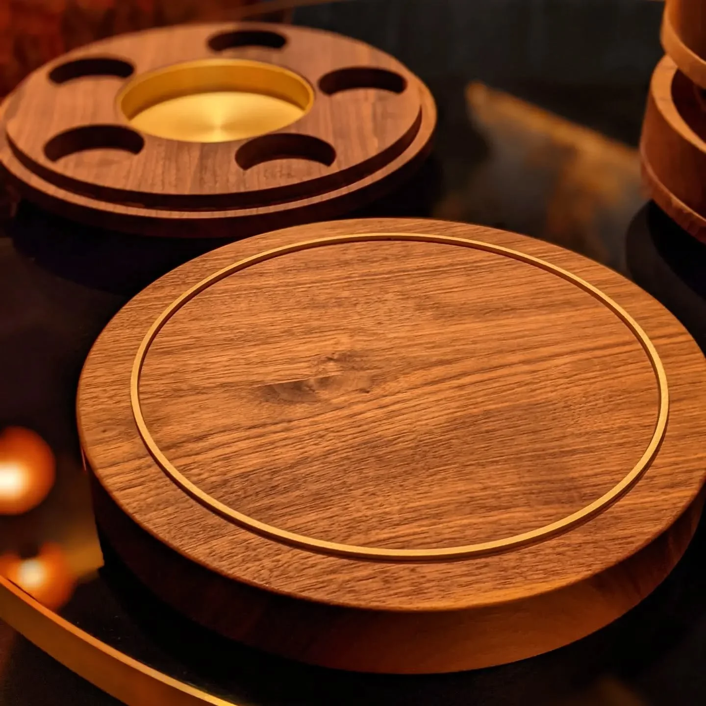 Working in a harmonious blend of premium wood and meticulously finished metal, we developed a curated collection that included signature service trays, a custom caviar presentation, and an architecturally inspired seafood tower, each piece designed to echo the hotel’s sophisticated aesthetic and commitment to exceptional hospitality.
